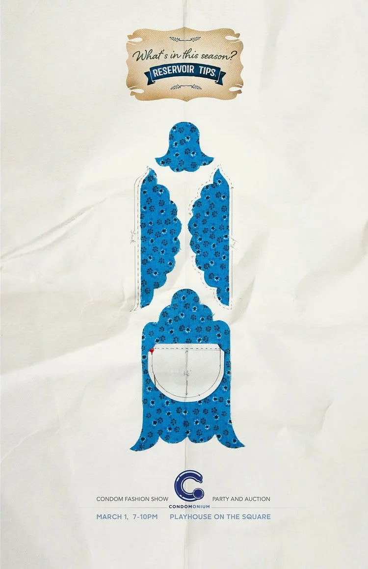 Condomonium, an annual party and condom fashion show, benefits Choices Memphis Center for Reproductive Health and helps raise awareness (and money) with arts and fashion. These posters were such a hit that they were also sold at the event and extras had to be printed due to high demand.