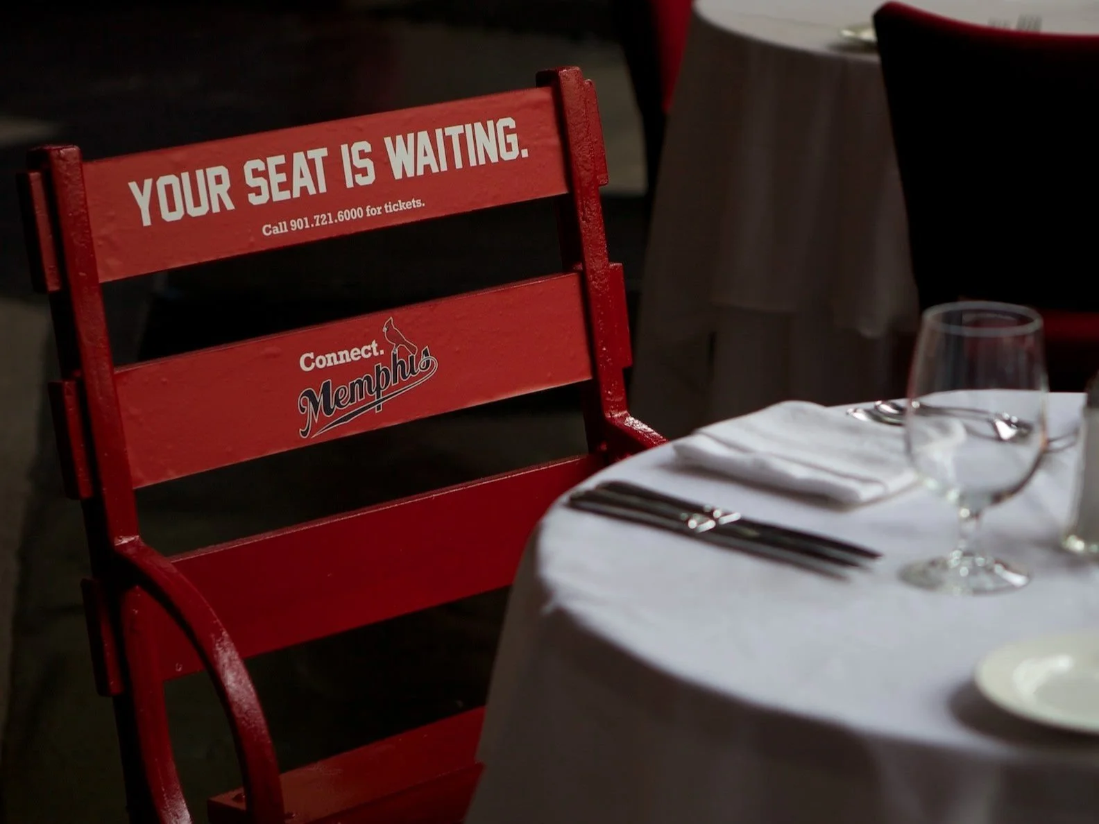 Stadium chair was placed downtown to promote season tickets with message: “Your seat is waiting.”