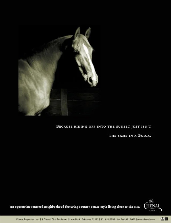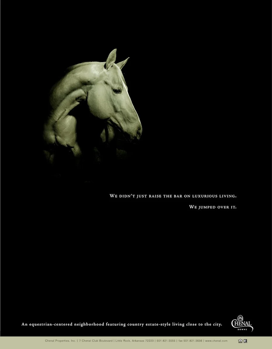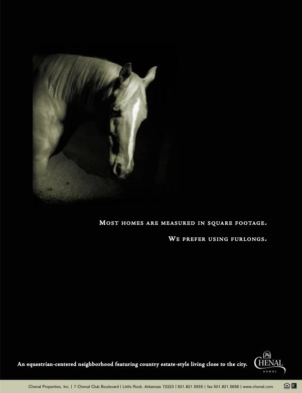 Chenal Downs is a beautiful, private, gated, equestrian-centered community with estate-sized five-acre home sites, forested greenbelts, ponds, and nature-trails. But before it was developed and ready for photography, they needed to sell lots in the area. This campaign succeeded by building excitement—drawing a connection between the natural beauty and majesty of horses and the community’s planned aesthetic. And it helped sell multiple lots worth millions of dollars.