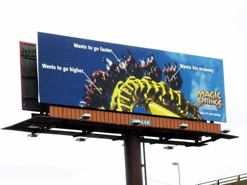 But there is no room for nuance or detailed information with outdoor ads. Where space and attention are minimal, the idea itself must hit hard. And quickly. It needs to be visually obvious; beautifully designed outdoor boards won't matter if there's no story or visual hook. Often, the headline is the billboard. It needs to be readable—usually in less than five seconds—and emotionally resonant. A few examples are below.
